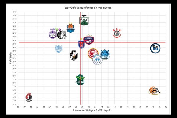 El índice de volumen y peso del triple mostró nuevamente a Ferro, Corinthians y Pinheiros como los equipos con mayor dependencia y eficiencia desde el perímetro.