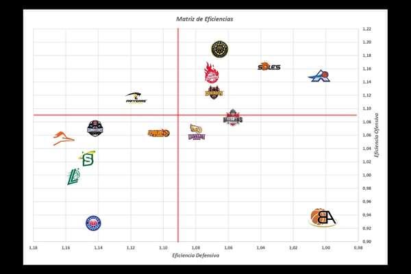 La eficiencia ofensiva promedio de la liga fue de 1,093 puntos por posesión, una cifra muy elevada a nivel continental. Tres equipos dominaron con claridad: