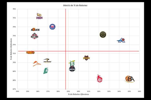 Los equipos más dominantes en el rebote defensivo fueron Halcones (75,2%) y Soles (73,7%), lo que explica su capacidad para cerrar posesiones sin segundas oportunidades.
