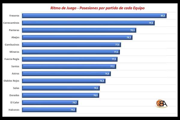 El promedio de posesiones por partido fue de 77,4, un ritmo alto que refleja el dinamismo de la liga.